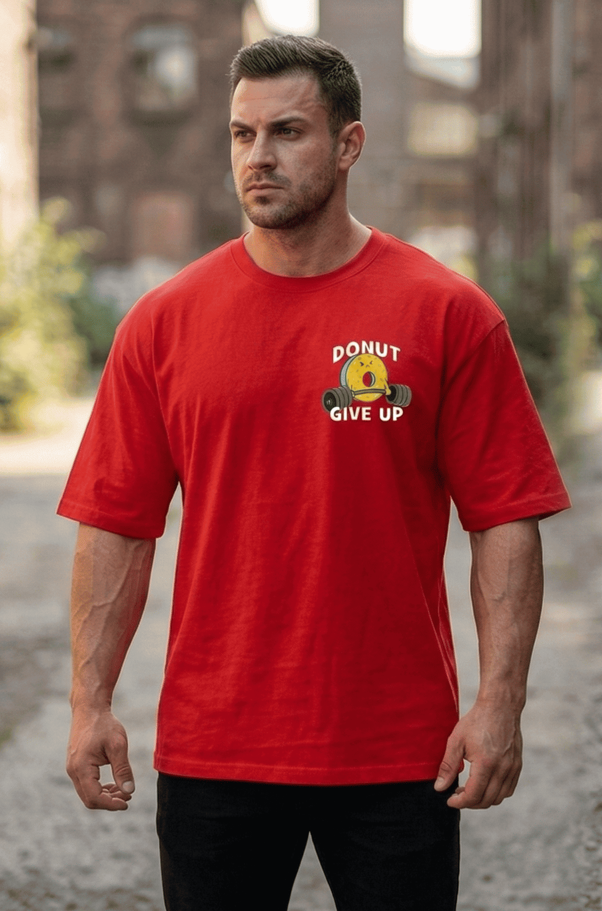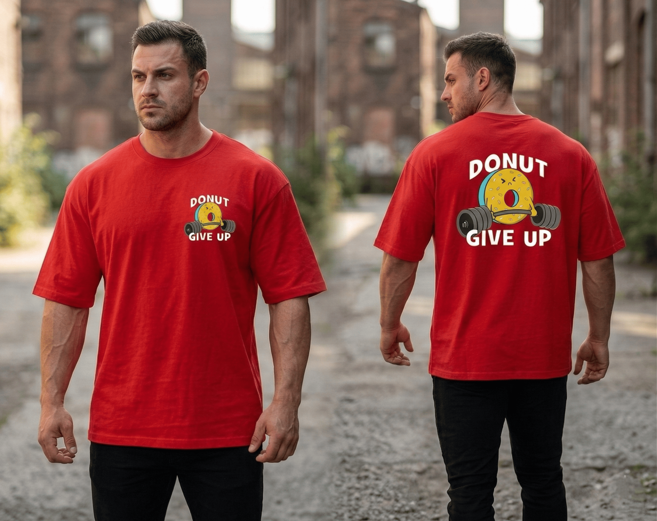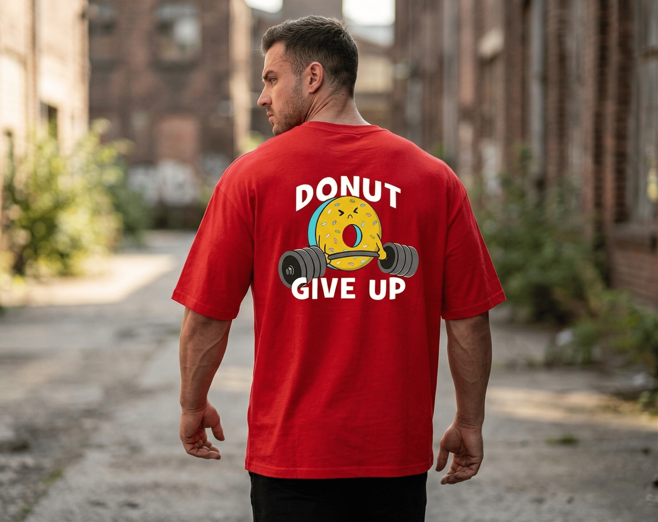 Fuel your workout with a side of humor. This “Donut Give Up” oversized tee is designed for those who crush their PRs but still have a soft spot for cheat day. Featuring a high-quality graphic of a determined donut deadlifting, it’s the perfect balance of grit and wit.