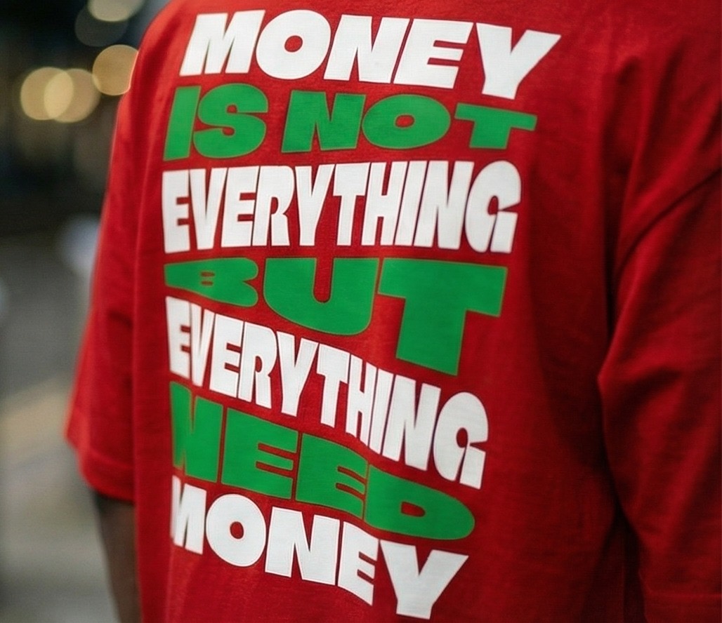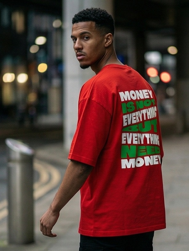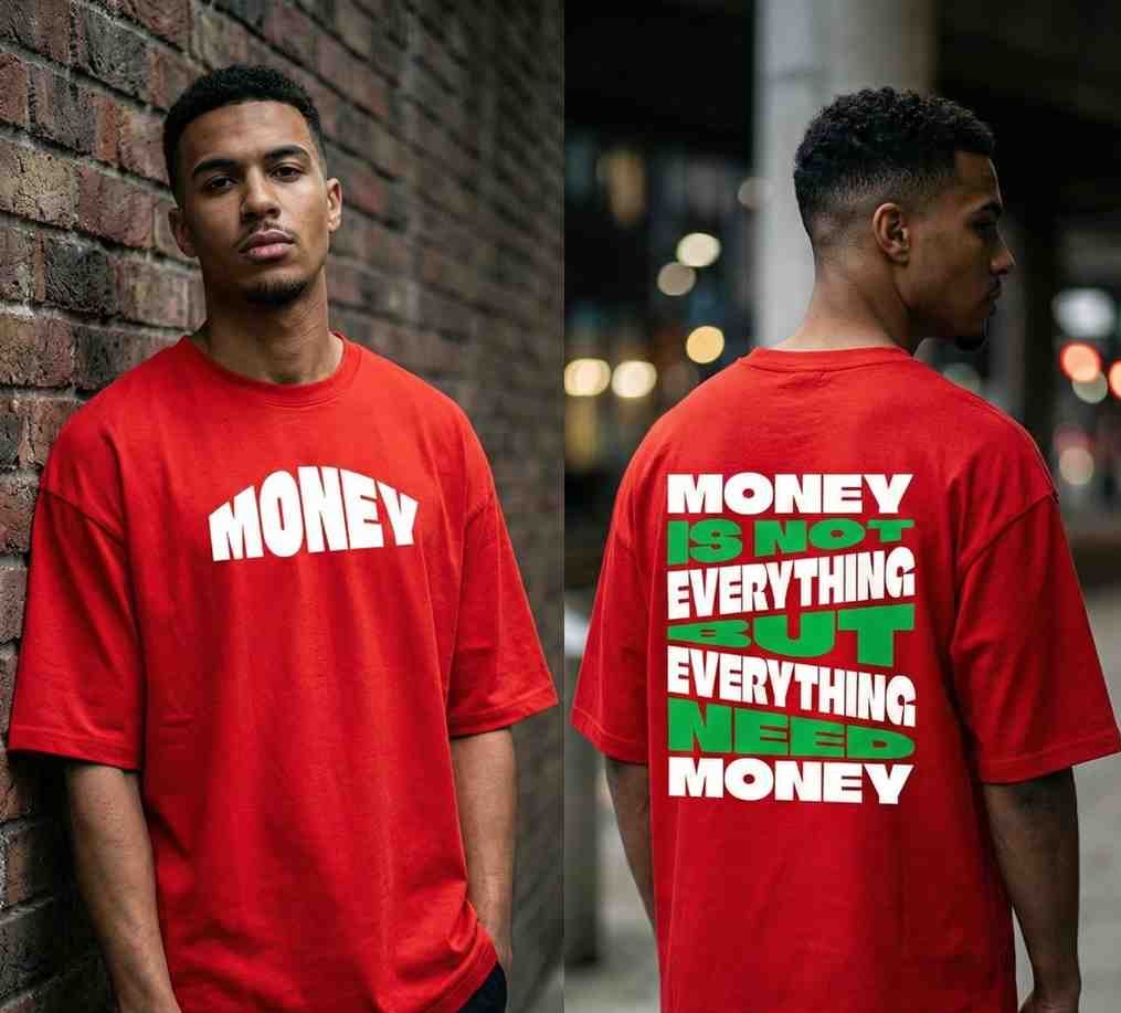 The “Money” Tee isn’t just a garment; it’s a mindset. Designed for those who understand the grind and the balance of ambition, this piece features a striking red base that demands attention.