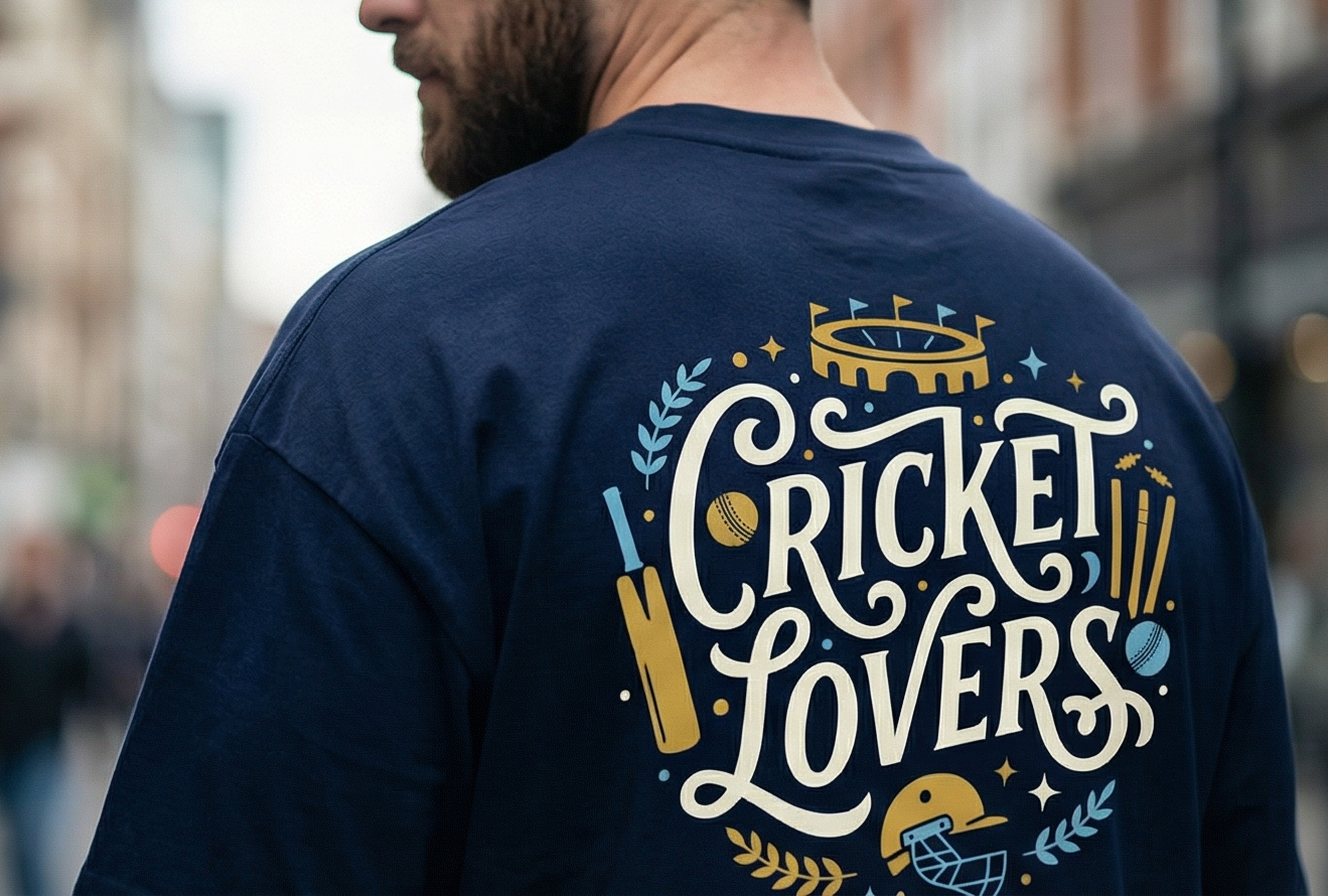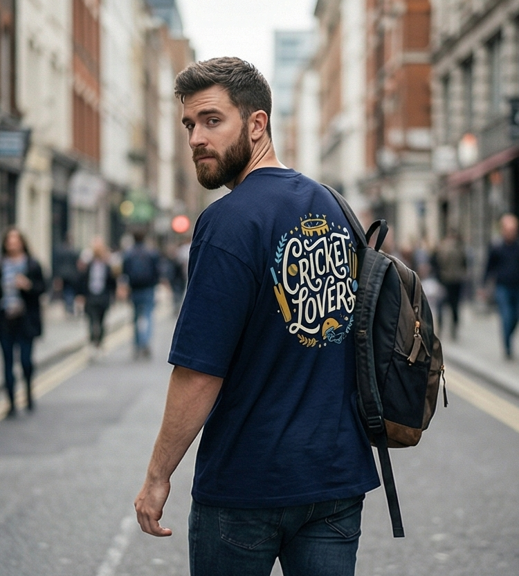Celebrate your passion for the pitch with this artistic cricket-inspired tee. Featuring a vintage-style “Cricket Lovers” emblem on the back and a bold front statement, it’s the ultimate choice for die-hard fans who live for every boundary and wicket.