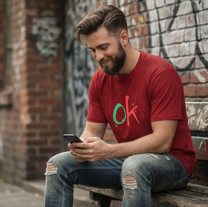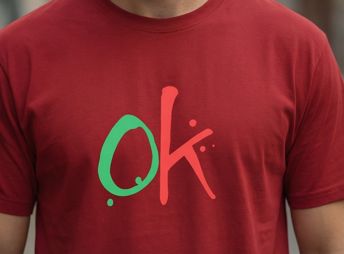 Keep it simple, keep it “OK.” This premium cotton tee features a bold “OK” graphic in vibrant green and red. It’s the ultimate essential for a laid-back, urban look that speaks for itself.